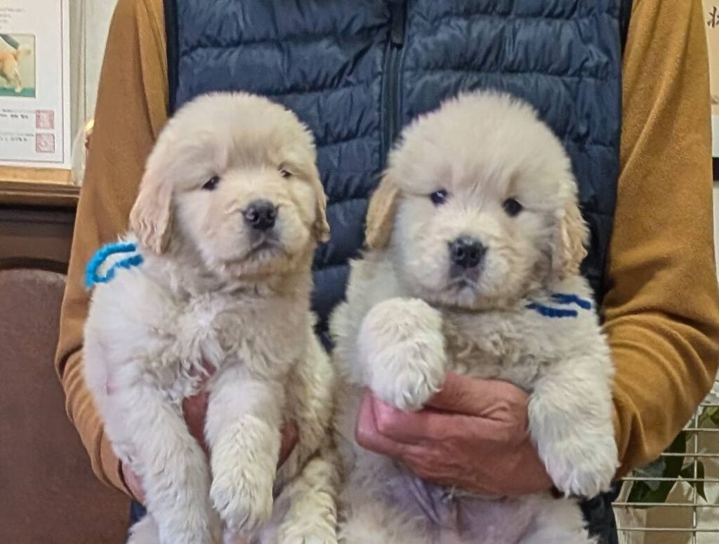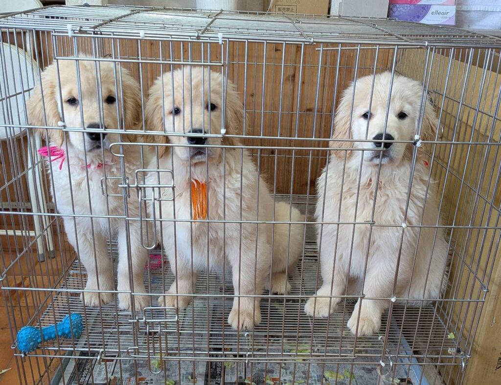 【子犬情報】キララちゃん無事に子犬を出産しました🐕(6頭) 誕生から40日目を過ぎた男の子と女の子の写真です。✨ 母親のキララちゃんは軽井沢ゴールデンの看板犬のアンリ血を引くゴールデンレトリーバーです。 子犬の父親はJKCチャンピオンのレオン君(デクスターの直子)です。 男の子・3頭 女の子・3頭 の計、6頭でした!